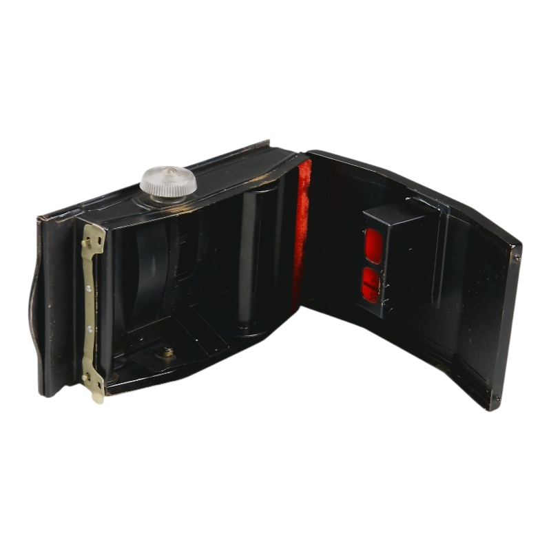 6x9 roll film holder by Plaubel. In full working condition. Has some cosmetic signs of use and ageing, some oxidation. 6x4.5 frame mask and a metal 120 film spool are included. Mounting side measures 76mm x 120mm.