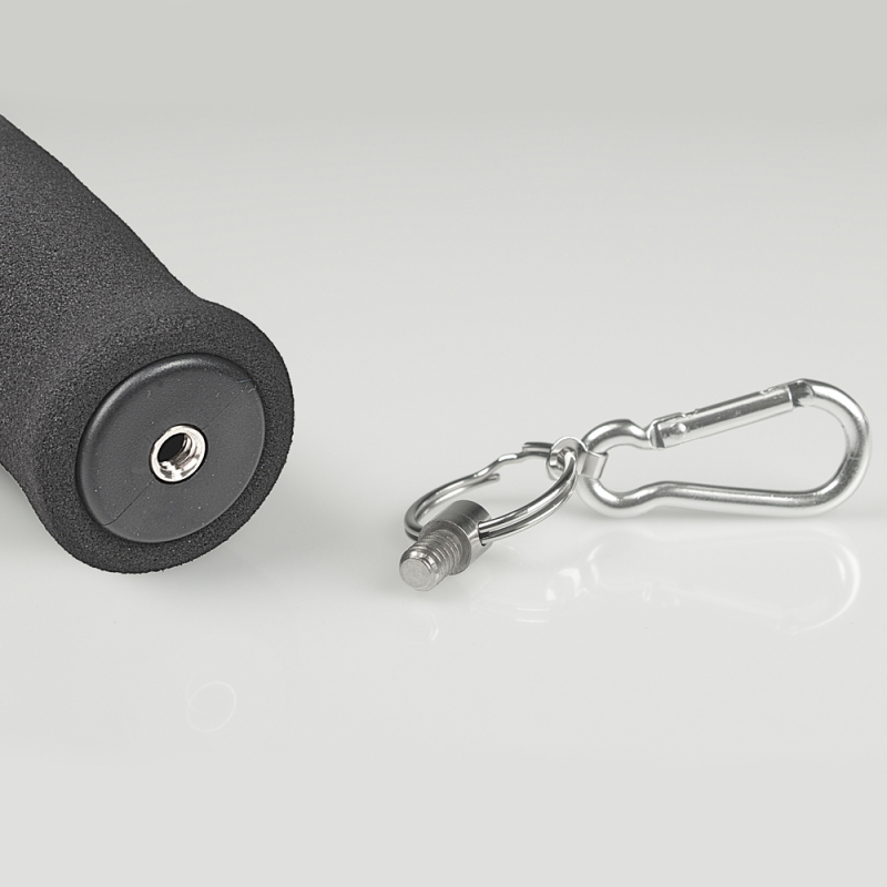For lighting units, cameras, etc. With foam shell and grip shape. Connection thread 1/4" with washer made of elastic plastic 1/4".Includes snap-hook with key-ring and fixture for tripod thread. Height: approx. 120 mm (4.7 in.)
