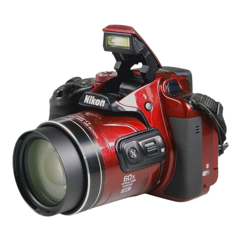 Superzoom camera with a stabilized 60x zoom lens (35mm equivalent to 24-1440mm) and a 20.2MP CMOS image sensor. In excellent and full working condition. Has some regular cosmetic signs of use. Ergonomic articulating rear screen. Also shoots 4K video.