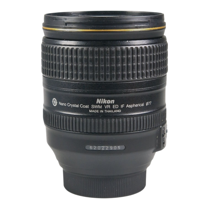 Checked and cleaned Nikkor zoom lens for Nikon FX cameras. In good and full working condition. Some normal cosmetic wear. Versatile focal length range make this an ideal one lens solution for professionals and hobbyists alike. VR image stabilization makes hand-held shooting easier.