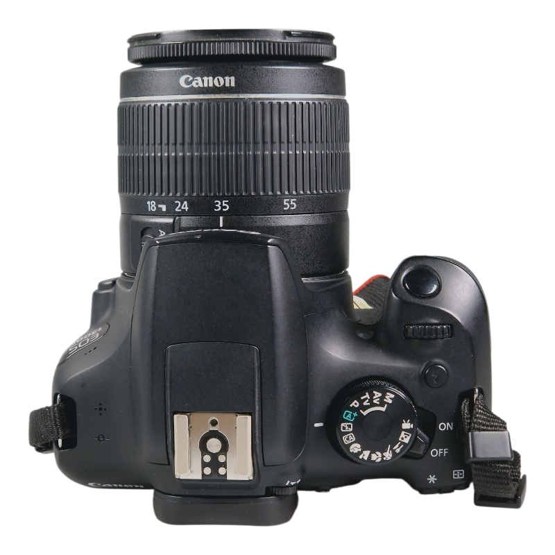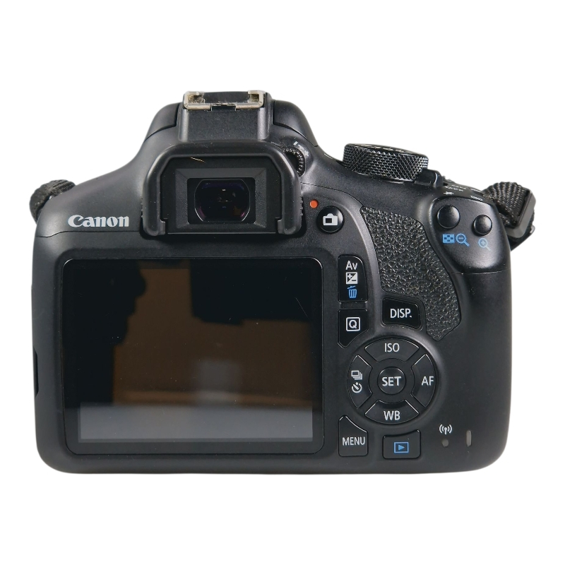 Checked and cleaned Canon DSLR camera with an 18-55mm kit zoom lens. Both in very good and full working condition. This camera, designed for beginner photographers, has an 18MP image sensor, Full HD video recording, creative effects, and Wi-Fi, which you can use to quickly transfer images to your phone.