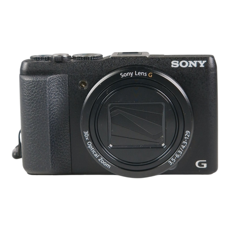 Checked and cleaned digital compact camera. In very good condition, just some wear on rear screen glass. Lens has 30x optical zoom, equivalent to a focal length of 24-720mm. HX60V also features a 20.4MP Exmor R® CMOS image sensor, Full HD 1080p video recording and wireless connection to smart devices.