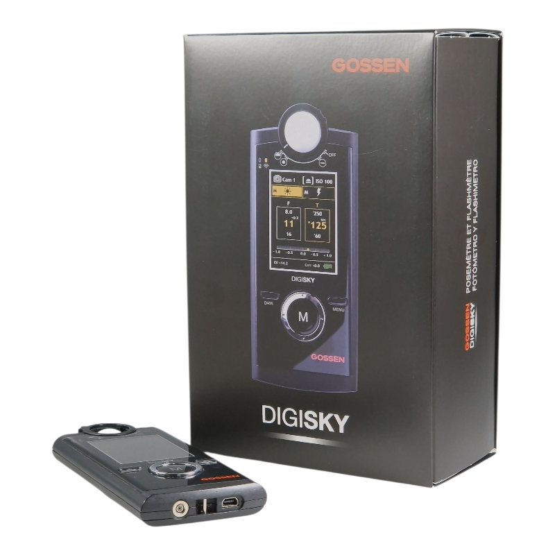 Modern light meter for ambient light and flash metering. Flash sync via PC Sync cable or via radio with full Elinchrom Skyport, Pocketwizard, Broncolor RFS2.1, Phottix Strato II and Calumet Pro compatibility. Some cosmetic wear, working perfectly.