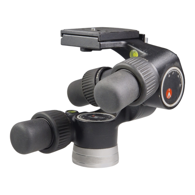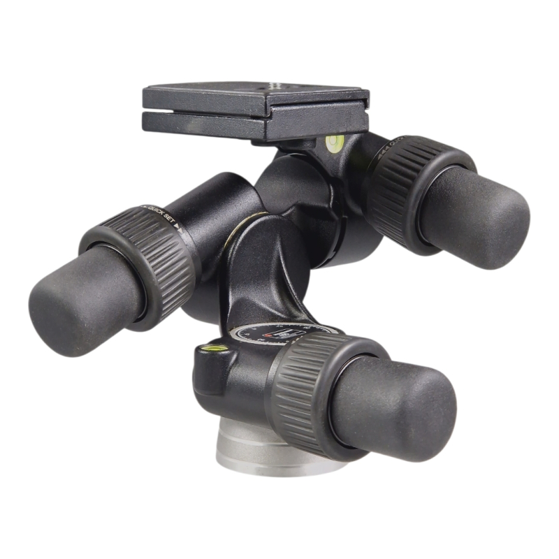Sturdy three-way geared tripod head. In very good working condition. Regular cosmetic signs of use.