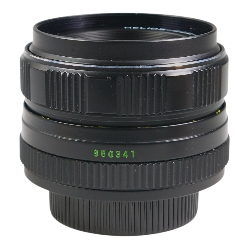 The legendary 58mm f/2 Helios. Automatic version in M42 mount, but modified to be all manual for easier adapted use. Optics are clear, tidy and scratch-free. Focusing adjusts nicely and with an even feel. Lens caps are included. Made in 1988 in USSR at Krasnogorsk Optical-Mechanical Factory (KMZ).