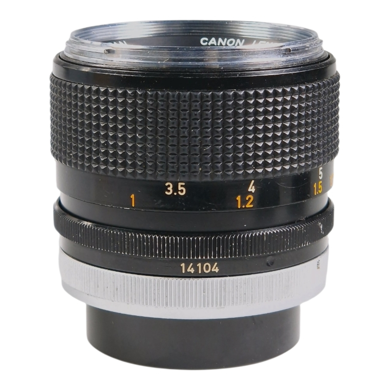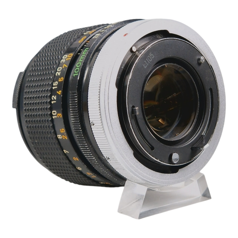 A compact short tele for Canon FD mount. Focusing is a bit uneven, but adjusts without slack and is not overtly firm. Optics are tidy with some regular dust, nothing excessive. Apparent exterior wear. Comes with lens caps and original metal BT-55 lens hood (that fits a bit loose). An older "chrome nose" model.
