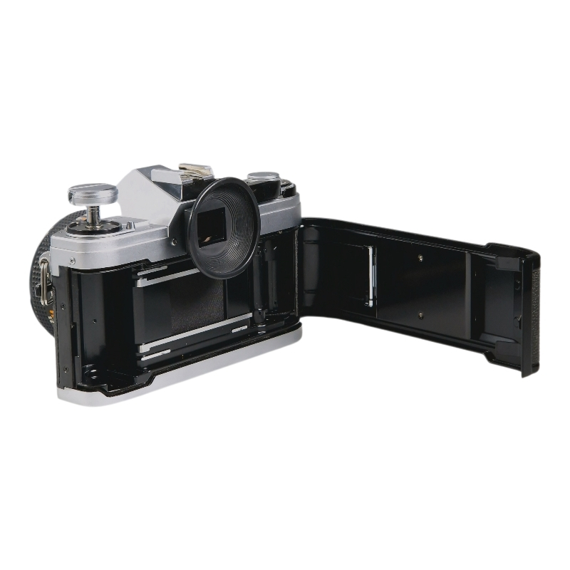Manual version of the AE-1 with a classic 50mm f/1.8 normal lens. Check and clean serviced. Camera and lens both in full working condition. Shutter speeds and exposure meter both on point. New light seals and mirror bumper installed. 50mm has some dust, but this is not excessive. Focusing is smooth. Regular cosmetic wear.