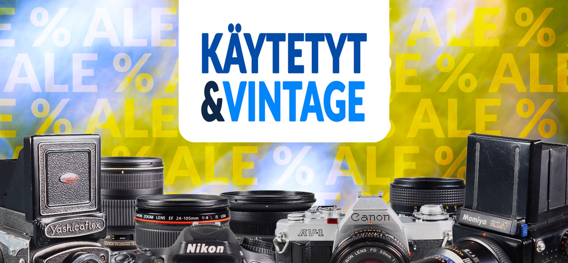 Käytetyt kamerat, objektiivit ja tarvikkeet tarjouksessa