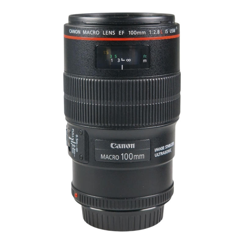 Kuntotarkistettu ja puhdistettu ammattitason makro-objektiivi Canon EOS -kameroille. Erinomaisessa kunnossa. Soveltuu loistavasti pienten asioiden, kuten kasvien ja hyönteisten kuvaamiseen lähietäisyydeltä. Valovoimaisen f/2.8 aukon ja 100mm polttovälin avulla luot kuviin pehmeän taustan ja saat kauniit kuvat myös hämärässä.