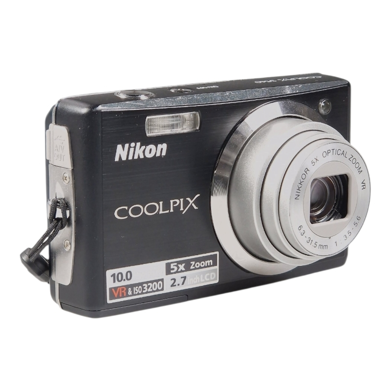 Helppokäyttöinen ja näppärän kokoinen 10 megapikselin digitaalinen kompaktikamera 5x zoom-objektiivilla (kinovastaavuus n. 35-175mm). Objektiivissa optinen VR-kuvanvakaaja. Normaalia kosmeettista käytön jälkeä, yleisilme on ihan siisti. Kamera on erinomaisessa ja täydessä toimintakunnossa.