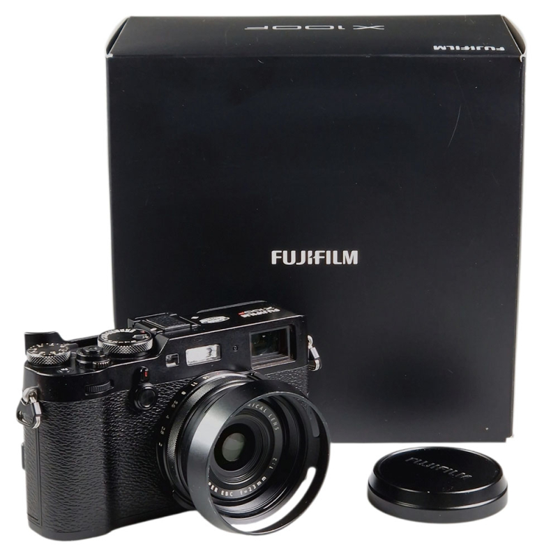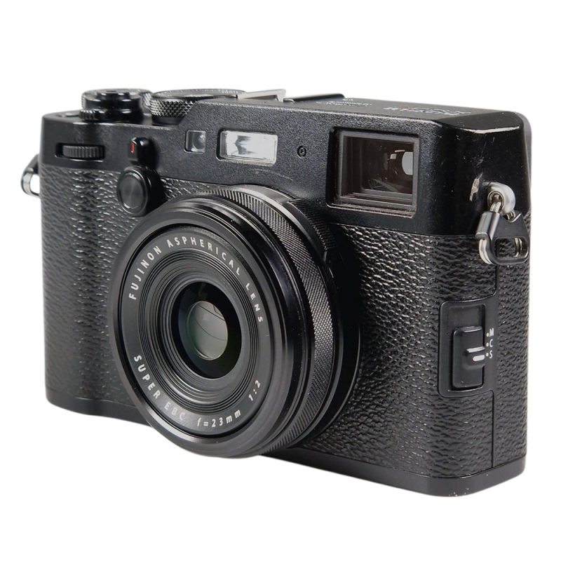 Kuntotarkistettu ja puhdistettu laadukas digitaalinen kompaktikamera valovoimaisella 23mm f/2 (34,5mm kinovastaava) ja 24,3 MP X-Trans CMOS III kuvakennolla. Erinomaisessa ja täydessä toimintakunnossa. Kuvausmäärä on varsin maltillinen. Vain kevyttä kosmeettista käytön jälkeä. X100F:stä löytyy mm. ergonomiset säätörullat, Fujin filmisimulaatioita, optinen ja elektroninen etsin ja mm. 1080p videokuvaus.
