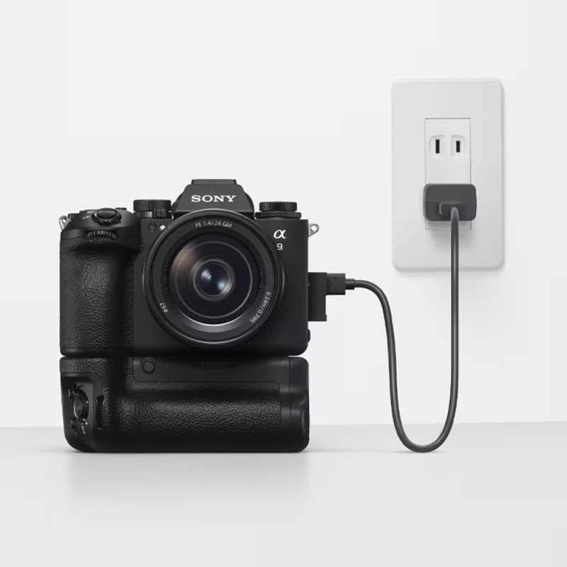 Ergonomisesti muotoiltu kuvauskahva helpottaa kameran käsittelyä erityisesti pystykuvia ottaessa, jolloin saat siitä tukevamman otteen kahvan avullla. Kahvaan mahtuu kaksi NP-FZ100-akkua ja molempien akkujen varaustaso näkyy kameran näytöllä, joten tiedät koko ajan kuinka paljon virtaa on jäljellä.