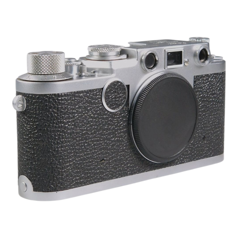 Leica IIf "Red Dial" vuodelta 1955. Normaalia ulkoista käytön jälkeä. Suljinajat kaikki toimivat, mutta suljinverhot vuotavat. Kamera ei tällaisenaan ole käyttökuntoinen. Etsinnäkymä on siisti, mittaetsin tarkentaa oikein. Ei filmipuolaa, runkotulppa on muovinen tarvike.