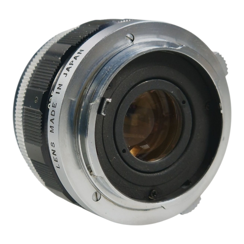 Normaaliobjektiivi Pen F ja Pen FT -puolikinokameroille. Optiikka on kirkas ja naarmuton. Optiikka on kirkas ja naarmuton. Muutamia pölyhiukkasia löytyy, mutta ei mitään liiallista. Tarkennus on tasainen ja sulava. Normaalia kosmeettista käytön jälkeä.