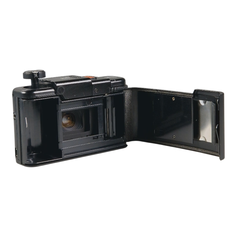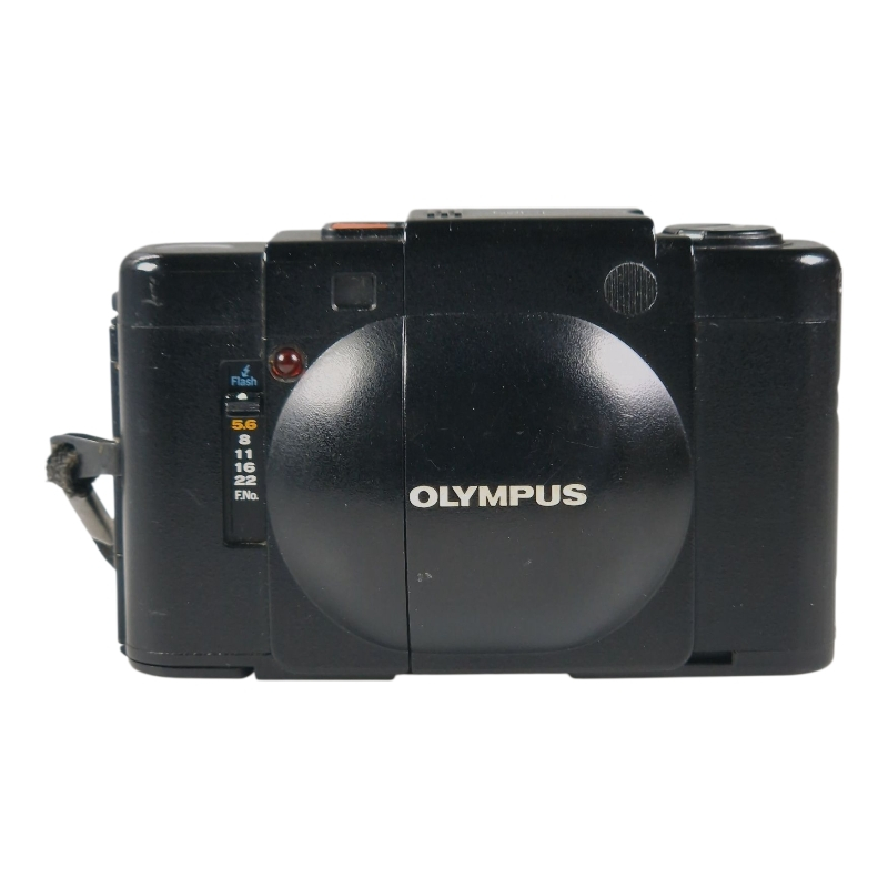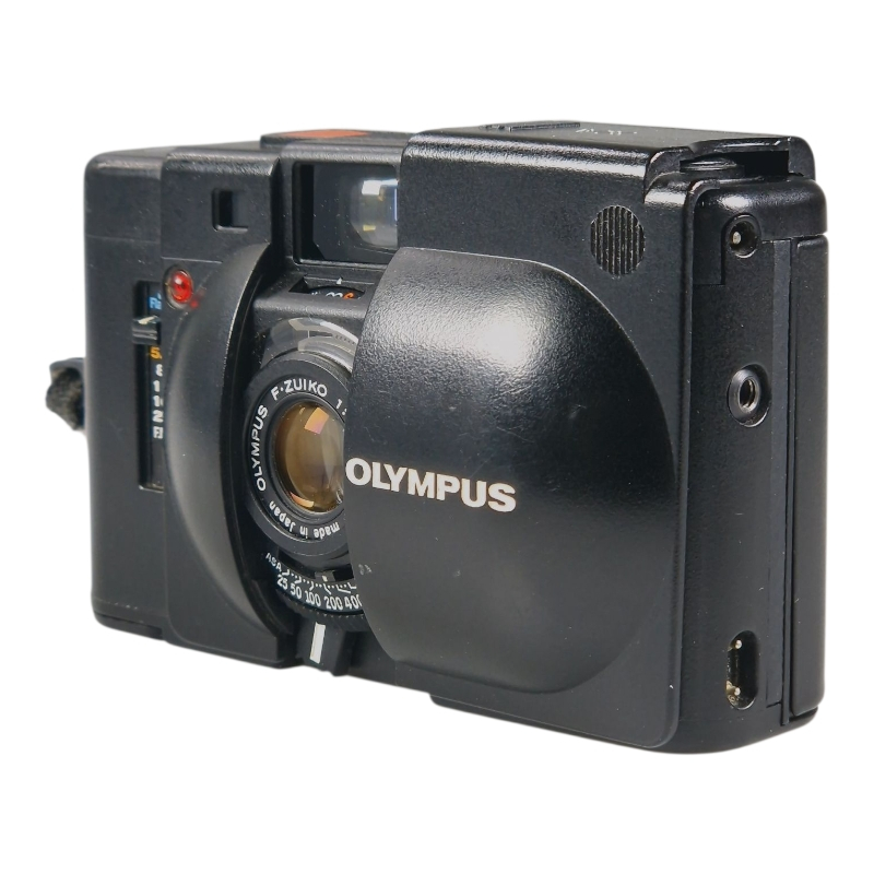 Taskukokoinen mittaetsinkamera skarpilla 35mm f/2.8 F.Zuiko -linssillä. Vuosihuollettu, kamera on erinomaisessa ja täydessä toimintakunnossa. Zuiko on siisti ja naarmuton. Valotiivisteet on uusittu. Normaalia ulkoista käytön jälkeä, yleisilme suhteellisen siisti. Rannehihna mukana.