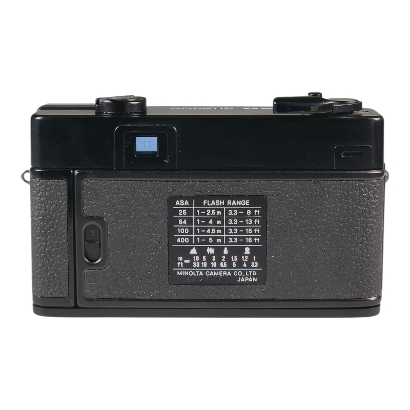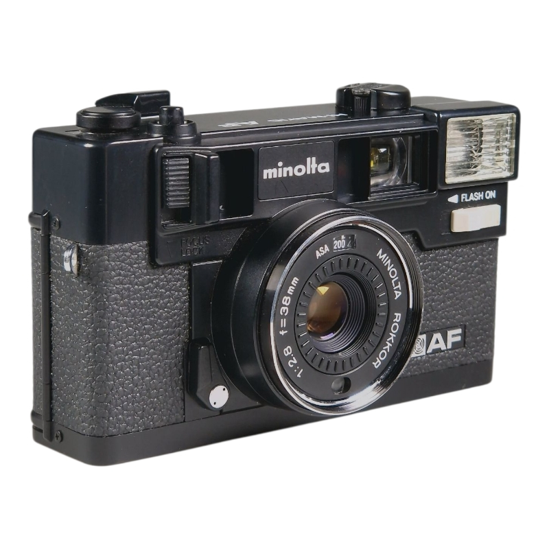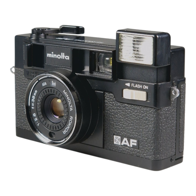Minoltan filmipokkari automaattitarkenteisella 38mm f/2.8 Rokkor linssillä. Erinomaisessa ja täydessä toimintakunnossa, linssi on siisti ja naarmuton. Valotiivisteet on uusittu. Etsin on hieman utuinen, mutta tämä ei haittaa käyttöä. Normaalia kosmeettista käytön jälkeä. Mukana Minoltan linssinsuoja. Käyttää tavallisia 1.5V AA-paristoja.