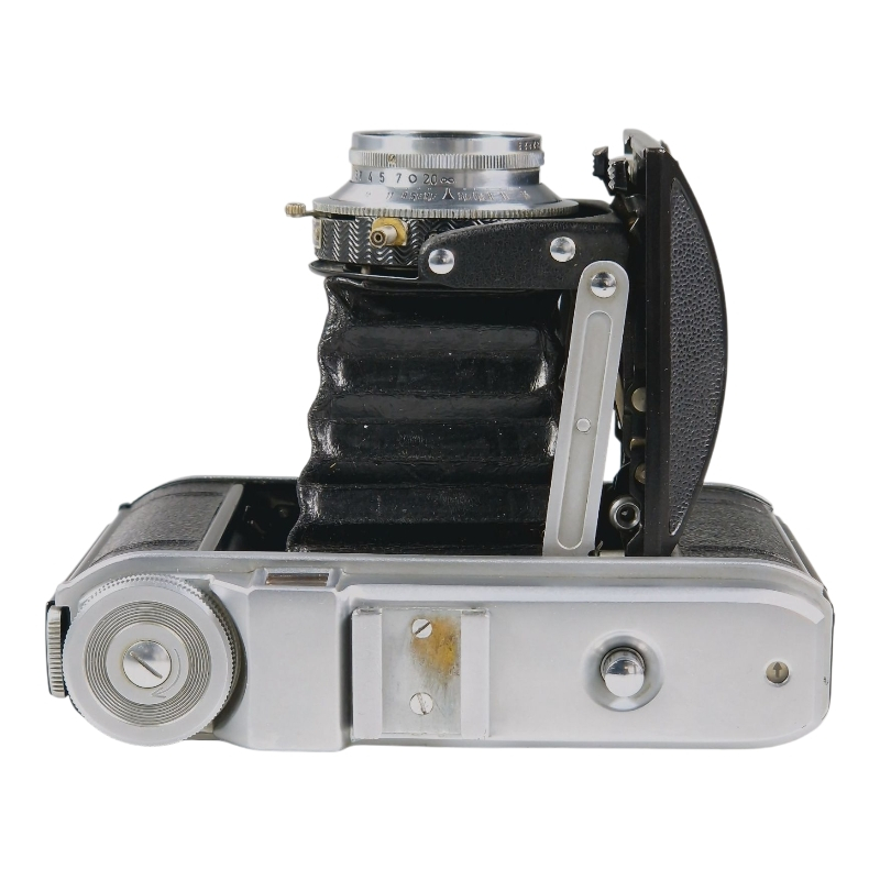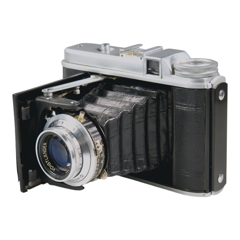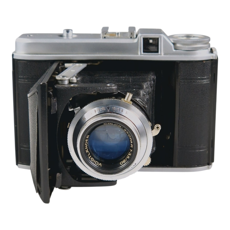 Kompakti 6x6 keskiformaattikamera 1950-luvulta. Linssinä 80mm f/3.5 Color-Skopar. Compur-Rapid-suljin, jossa ajat 1s-1/500s ja B. Suljinajat 1s ja 1/2s ylivalottavat puolisen aukkoa, muuta ajat kunnossa. Skopar on siisti ja naarmuton. Palkeet valotiiviit. Normaalia käytön jälkeä, yläkuoressa pieni painauma. Mukana alkuperäinen valmiuslaukku, jonka hihna on hieman hapertunut.