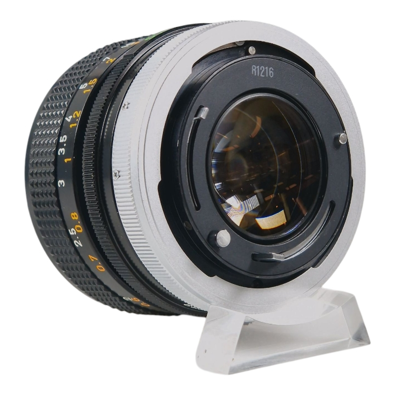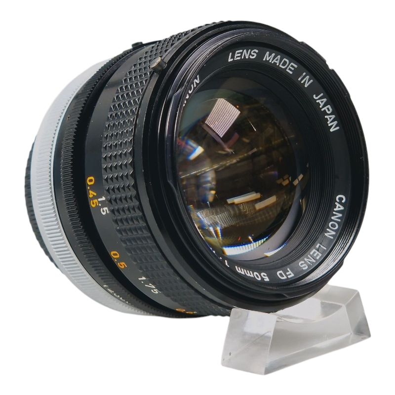 Valovoimainen normaalilasi Canon FD -kiinnityksellä. Erinomaisessa kunnossa. Tarkennus on aavistuksen kuivakka, mutta säätyy sulavasti. Himmennin on puhdas ja napakka. Optiikka on kirkas, siisti ja naarmuton. Kevyttä ulkoista käytön jälkeä. Canonin linssinsuojat mukana.