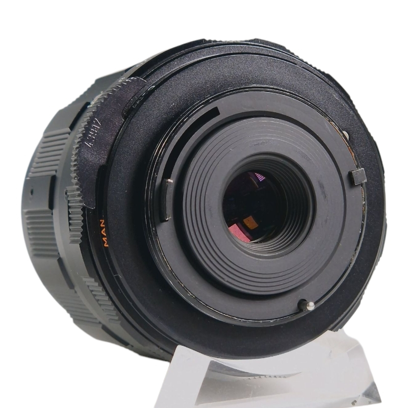 Laadukas ja kompakti 1:2 makro-objektiivi M42-kiinnityksellä. Optiikka siisti, tarkennus sulava ja tasainen, himmennin puhdas ja napakka. Ulkoasu varsin miellyttävä. Linssinsuojat mukana.