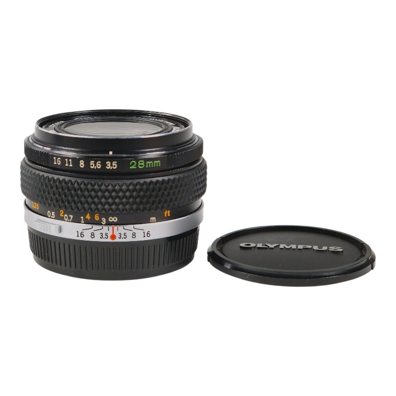 Todella kompakti laajakulma Olympus OM -kiinnityksellä. Tarkennus on tasainen, himmennin on puhdas ja napakka. Ei liiallista pölyä optiikassa, linssipinnat naarmuttomat. Normaalia, kevyttä kosmeettista käytön jälkeä. Mukana linssinsuojat.