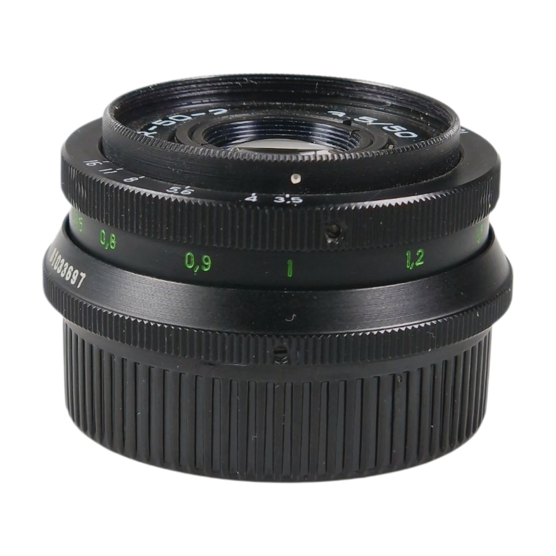Piskuinen normaaliobjektiivi M42-kierrekiinnityksellä. Erinomaisessa kunnossa. Tarkennus on sulava ja tasainen. Optiikka on kirkas, siisti ja naarmuton. Manuaalinen himmennin. Valmistettu 1981 Krasnogorskin optis-mekaanisilla tehtailla (KMZ). Objektiivin takasuoja mukana.