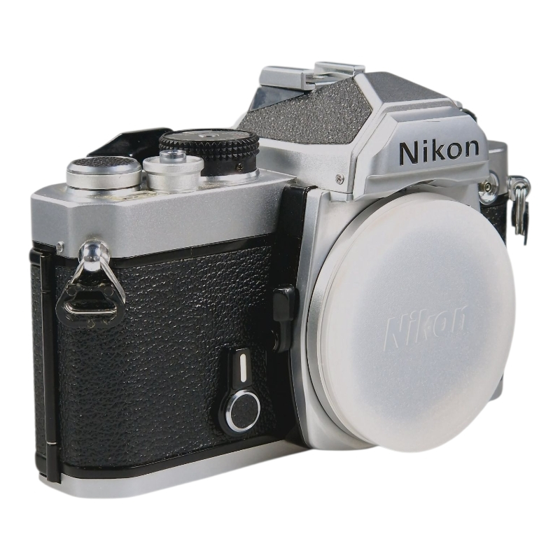Nikonin mekaaninen klassikkorunko. Vuosihuollettu. Kamera on erinomaisessa ja täydessä toimintakunnossa. Suljinajat kaikki kohdillaan, valotusmittari mittaa oikein. Valotiivisteet ja peilin pehmuste on uusittu. Ulkoasu on siisti, vain kevyttä käytön jälkeä. Runkotulppa mukana.