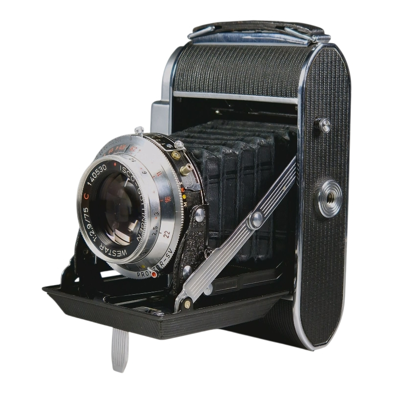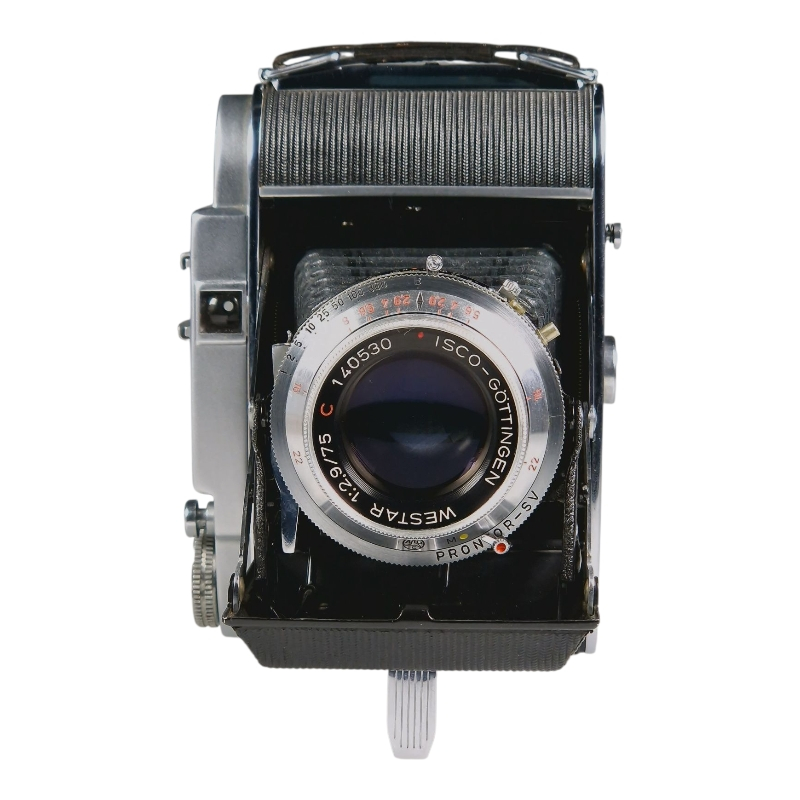 6x6 paljekamera Isco-Göttingen Westar 75mm f/2.9 C linssillä. 1s suljinaika jumittaa, muut ajat kunnossa. Etulinssillä jonkin verran puhdistusjälkiä, jotka voivat vaikuttaa kuvaan esim. vastavaloon kuvatessa. Muutoin optiikka on siisti. Palje läpäisee taskulampputestin. Käyttää yleistä 120-rullafilmiä.