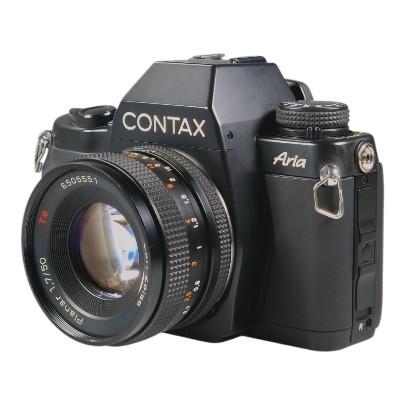 Edistynyt filmi-SLR ja teräväpiirtoinen Carl Zeiss Planar -normaaliobjektiivi. P, Av, Tv ja M valotukset, ergonomiset käsisäädöt, moottoroitu filminsiirto, jne. Erinomaisessa ja täydessä toimintakunnossa. Suljinajat ja valotus kaikki kohdillaan. Planarin optiikka on siisti, tarkennus säätyy tasaisesti. Ulkoasu on hyvinkin siisti, toki hieman käytön jälkiäkin löytyy. Contax-linssinsuoja mukana.
