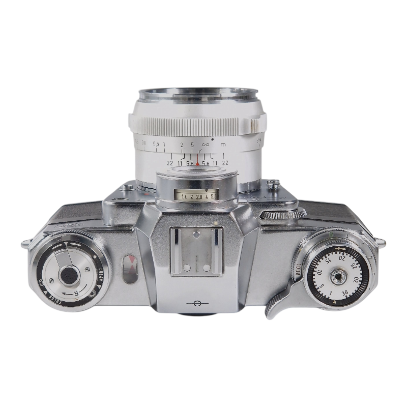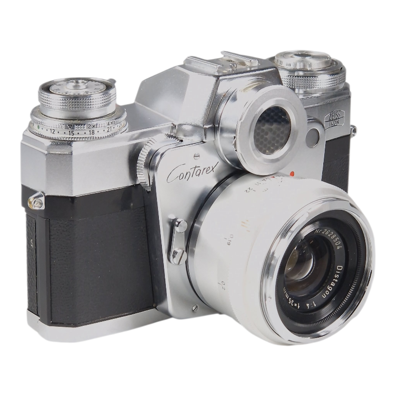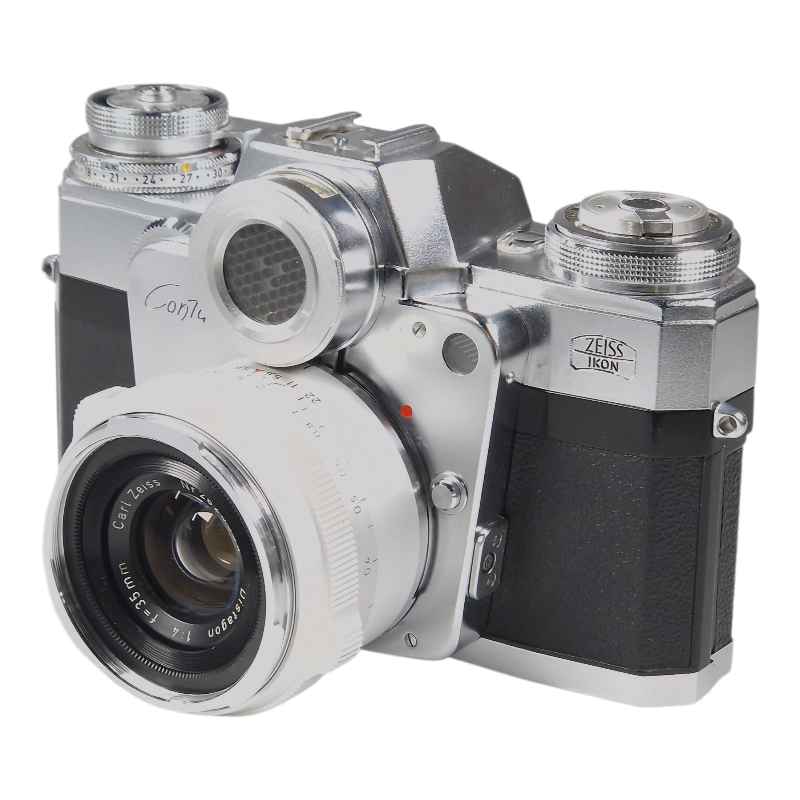 Zeiss Ikonin ensimmäinen SLR-kamera, joka saapui markkinoille 1959. Linssinä Zeissin 35mm f/4 Distagon. Kaikki suljinajat toimivat, nopeimmat ajat 1/125s - 1/1000s alivalottavat n. 1/2 aukkoa. Himmennin säätyy miellyttävästi. Distagonin yhdellä elementillä havaittavissa utua tai separaatiota, kuitenkin kuvauskunnossa ja muutoin optiikka on siisti ja naarmuton.