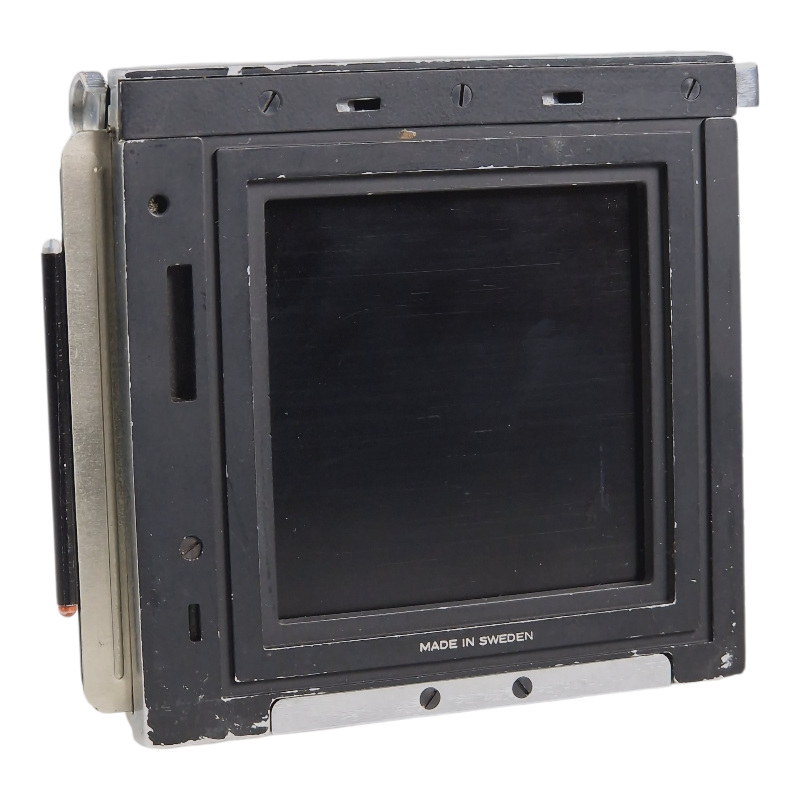 Suhteellisen harvinaiset Hasselbladin laakafilmiperä, 3 kpl laakafilmikasetteja ja Hasselbladin vanhempi filmileikkuri. Perässä ja kaseteissa joitain käytön jälkiä, kuitenkin erittäin hyvässä kunnossa. Filmileikkurin valkoisessa muoviosassa pieni murtuma.