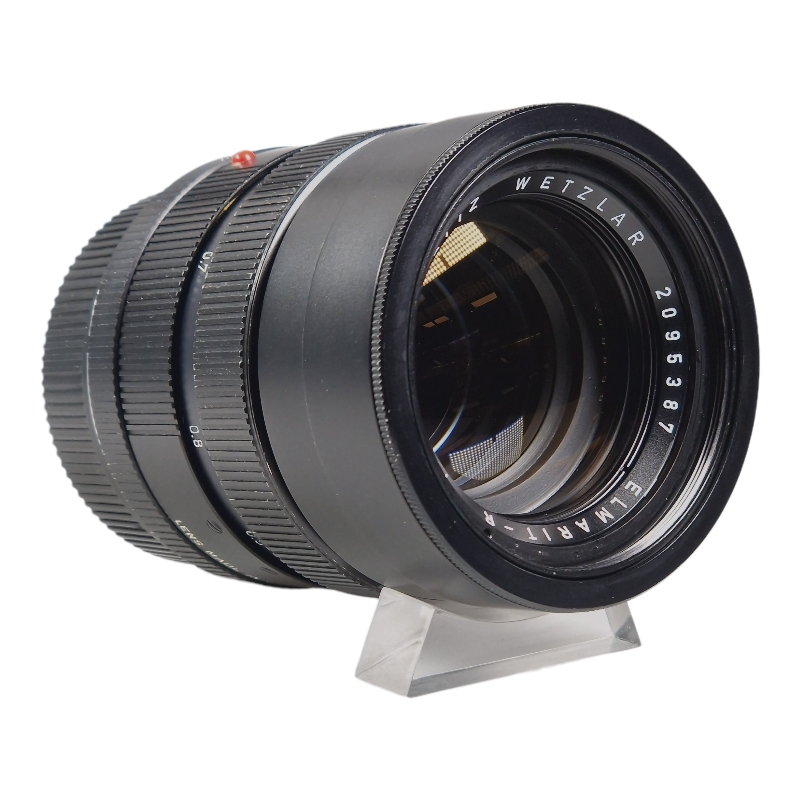 Leica R -teleobjektiivi vm. 1965. Tarkennus säätyy tasaisesti, himmennin on puhdas ja napakka. Ulkoiset linssipinnat ovat naarmuttomat. Optiikan sisällä havaittavissa hieman hentoista utua, jolla tuskin vaikutusta piirtoon. Sisäänrakennettu vastavalosuoja. Mukana alkuperäinen 14161R Series VII -suodinpidike ja UVa Series VII -suodin, sekä takatulppa.