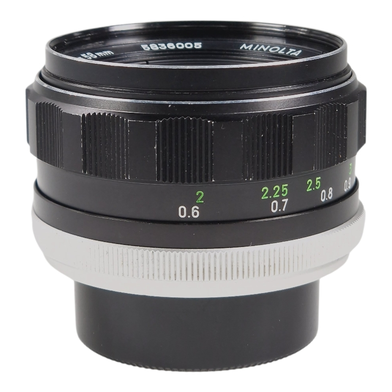Valovoimainen normaaliobjektiivi Minoltan käsitarkenteisille filmirungoille. Optiikka on kirkas, puhdas ja naarmuton. Himmennin on puhdas ja napakka. Tarkennus on aavistuksen kuivakka, säätyy kuitenkin varsin tasaisesti. Ei välystä. Linssinsuojat mukana. Myös mainio potrettilinssi peilittömälle.