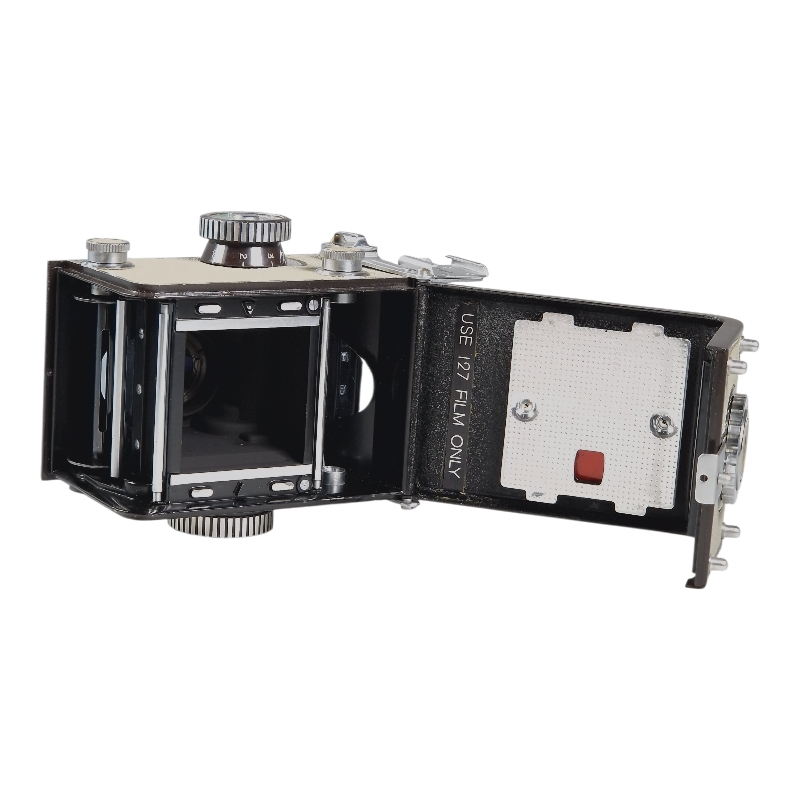 Tyylikäs 127-filmille 4x4-ruutua kuvaava kaksisilmäinen. Suljinajat kunnossa, tarkennus on tasainen, optiikka on siisti. Varsin miellyttävä ulkoasu, toki joitain käytön jälkiä löytyy. 127-filmin saatavuus on heikkoa, joten kameraa ei ole testattu filmillä, mutta filminsiirto näyttäisi toimivan asiallisesti.