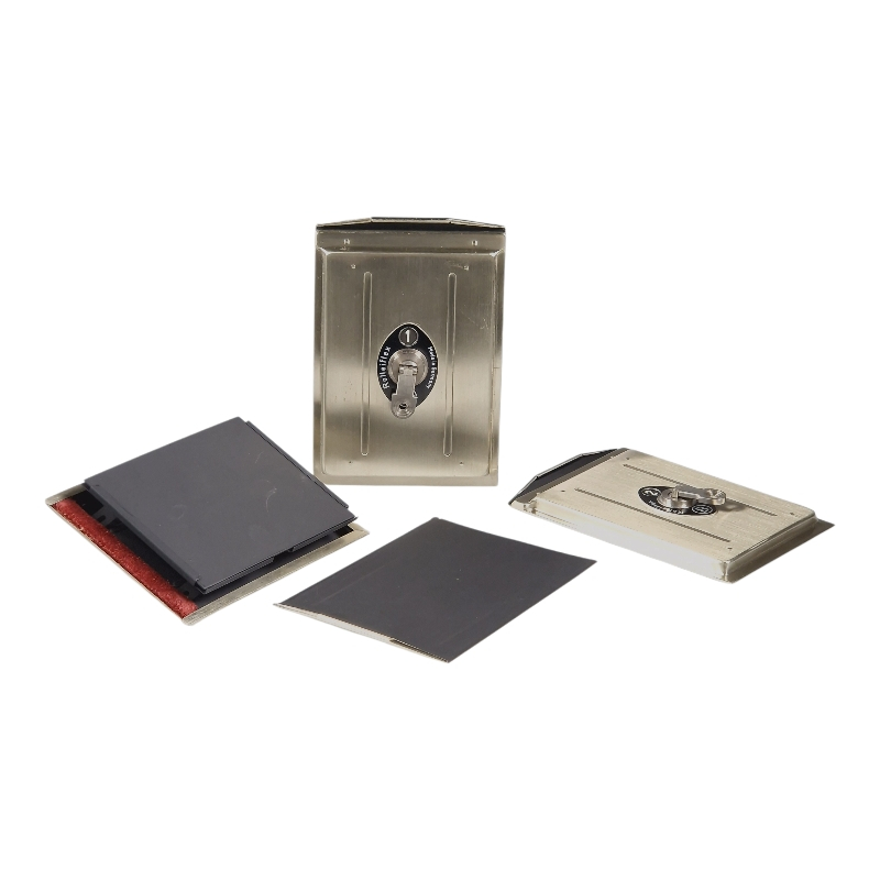 Soviteperä Rolleiflexille ja Rolleicordille lasinegatiivien kuvaamiseen. Mukana kolme kasettia ja tähyslasi. Joitain käytön jälkiä, yleisilm eok, kaikki täydessä käyttökunnossa.