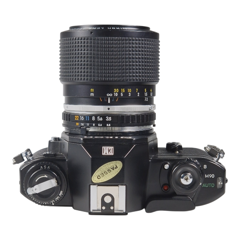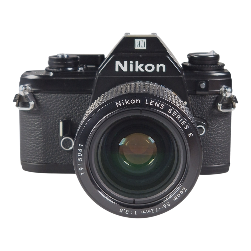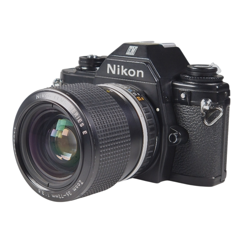 Yksi pienimpiä Nikonin filmirunkoja näppärän 36-72mm yleiszoomin kera. Vuosihuollettu. Kamera erinomaisessa ja täydessä toimintakunnossa. Uudet valotiivisteet ja peilin pehmuste. Optiikassa hieman pölyä, mutta ei mitään liiallista. Linssipinnat naarmuttomat, mekaniikka on sulavaa.