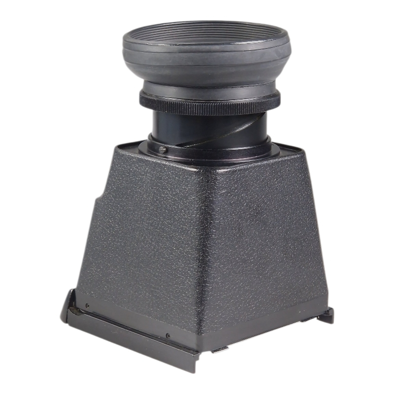Luuppietsin Mamiya RB67:lle. Optiikassa joitain pölyhiukkasia ja muutamia puhdistusjälkiä, mutta etsinnäkymä on selkeä ja kirkas.