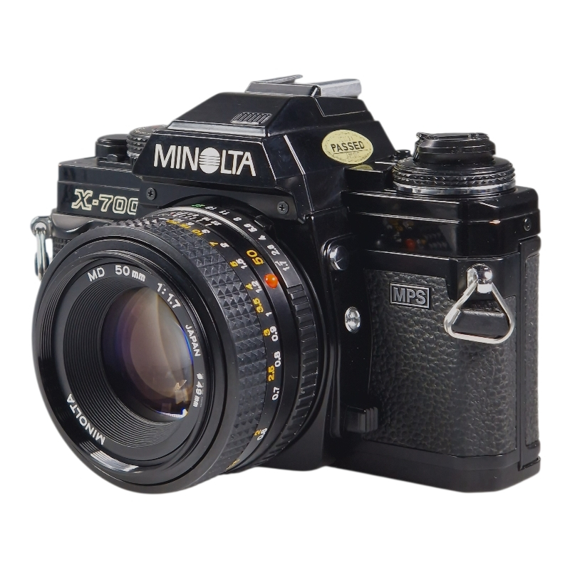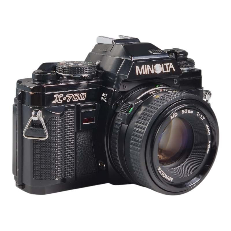 Monipuolinen X-700 filmirunko, sekä valovoimainen ja skarppi 50mm f/1.7 normaaliobjektiivi. Filmilaskuri ja viritysmekanismi huollettu 01/2026 ja vuosihuollettu. Kamera ja objektiivi molemmat erinomaisessa ja täydessä toimintakunnossa. 50mm optiikka on kirkas, siisti ja naarmuton. Tarkennus on sulava, himmennin on napakka. Ulkoasu on myös siisti, vain kevyttä käytön jälkeä. Uudet valotiivisteet ja peilin pehmuste.