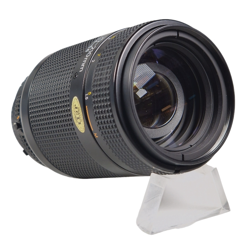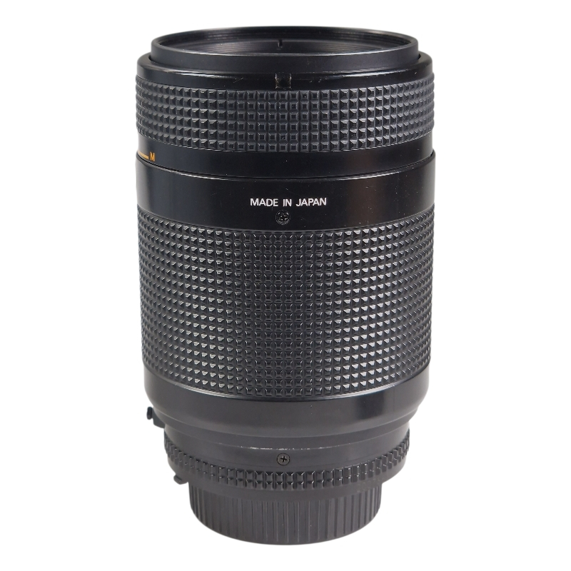 Automaattitarkenteinen Nikkor-telezoom erinomaisessa ja täydessä toimintakunnossa. Pumppuzoomeille tyypillisesti vähän pölyä optiikassa, mutta tässä tapauksessa varsin maltillisesti. Linssipinnat ovat naarmuttomat. Erittäin siisti ulkoasu. Rungoille, joissa tarkennusmoottori.