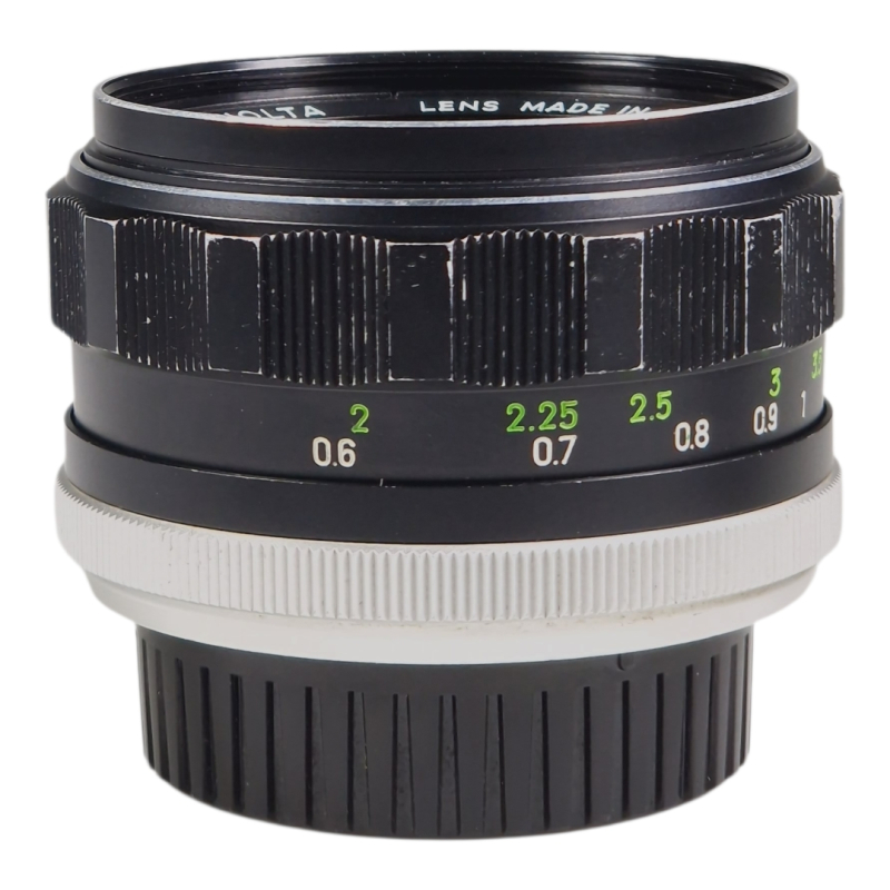 Valovoimainen normaaliobjektiivi Minoltan käsitarkenteisille filmirungoille. Optiikka on kirkas, siisti ja naarmuton. Himmennin on puhdas ja napakka. Tarkennus on aavistuksen kuivakka, säätyy kuitenkin varsin tasaisesti. Ei välystä. Myös mainio potrettilinssi peilittömälle. Normaalia kosmeettista käytön jälkeä.