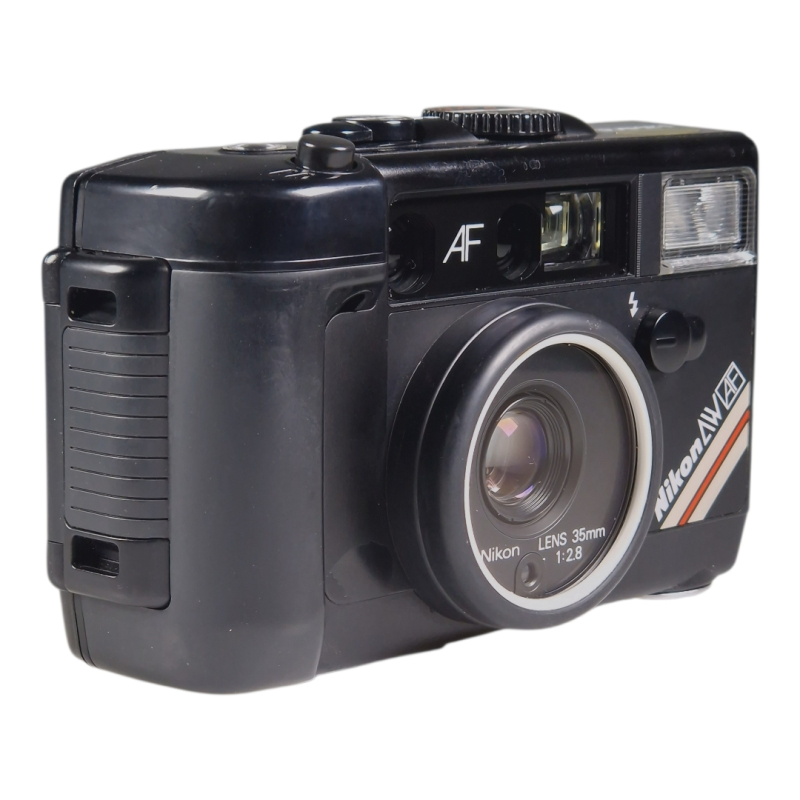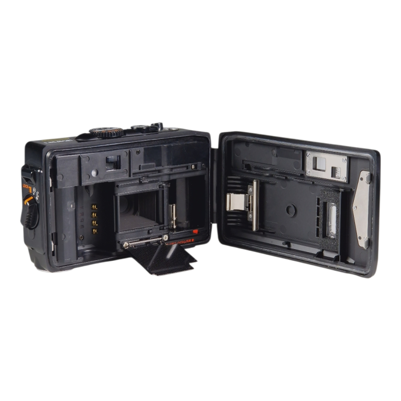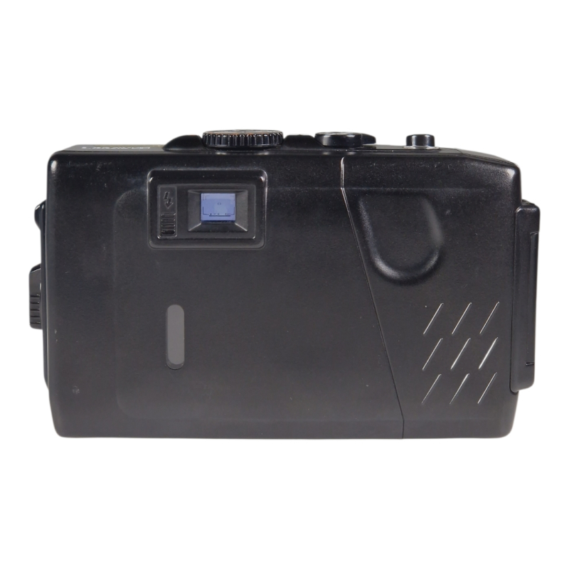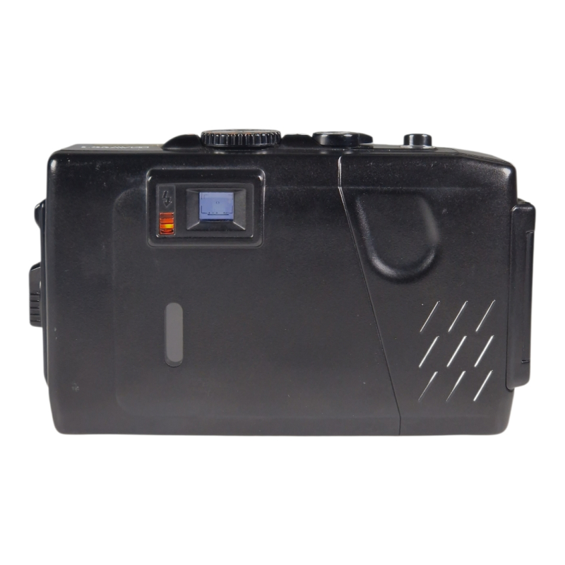 Hieman harvinaisempi vankkarakenteinen ja vesitiivis filmipokkari, jossa hyvälaatuinen 35mm f/2.8 linssi. Erinomaisessa ja täydessä toimintakunnossa. Automaatti- ja manuaalitarkennus. Käyttää tavallisia sormiparistoja. Normaalia ulkoista käytön jälkeä.