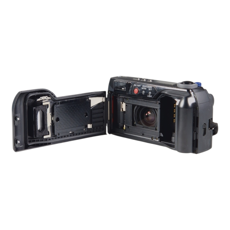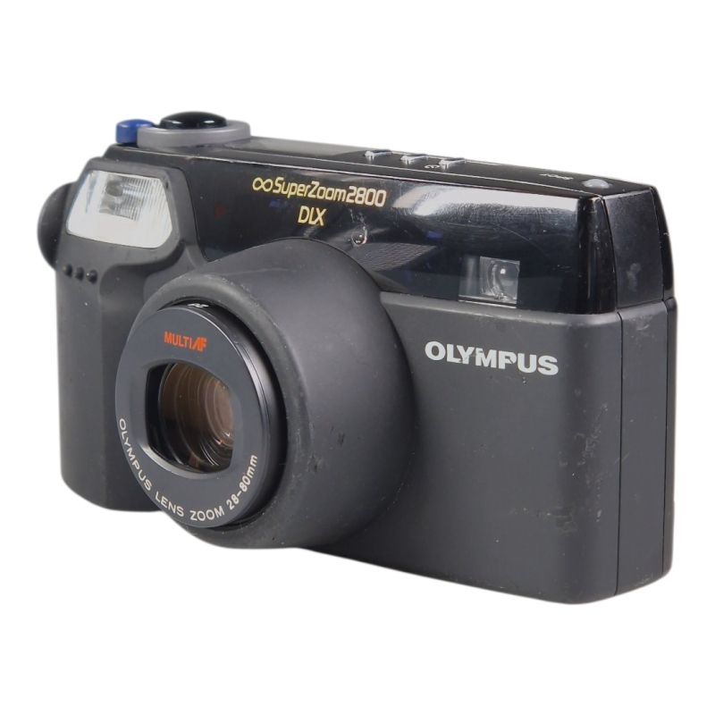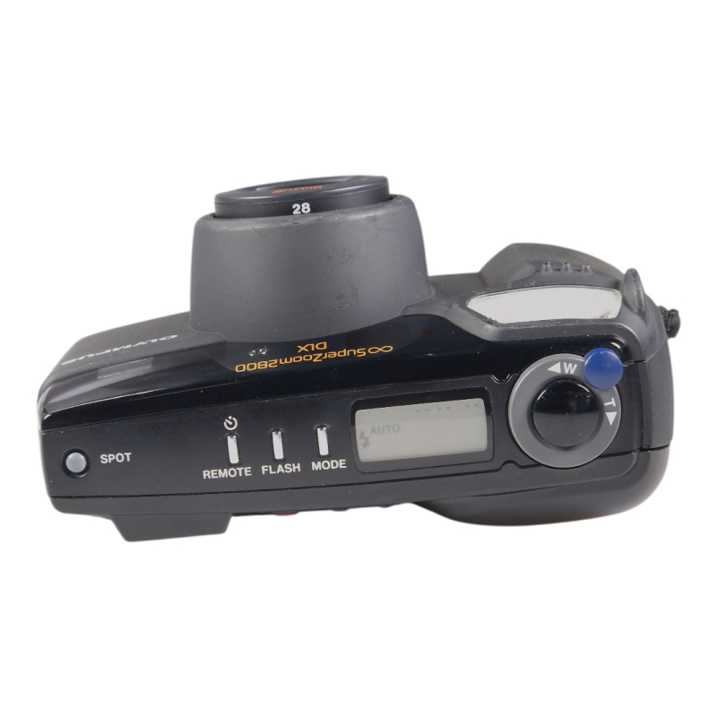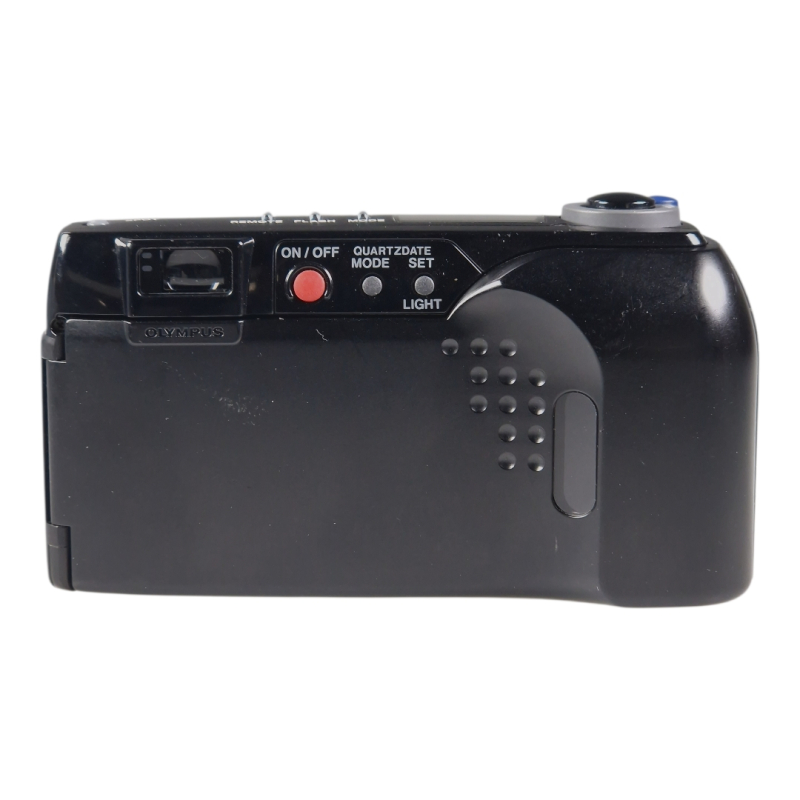 Olympuksen 35mm filmipokkari hieman laajakulmaisemmalla 28-80mm zoom-objektiivilla. Automaattitarkennus, automaattivalotus. Täydessä toimintakunnossa, optiikka on siisti ja naarmuton. Jonkin verran kosmeettista käytön jälkeä.