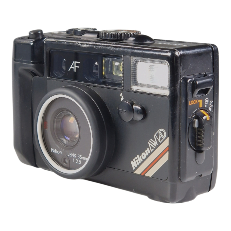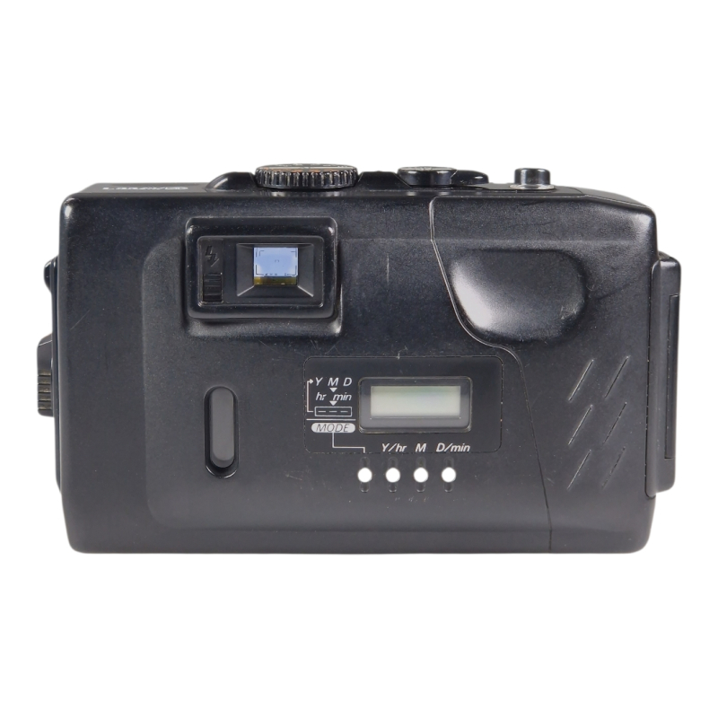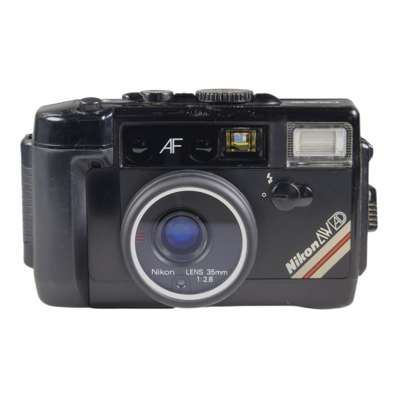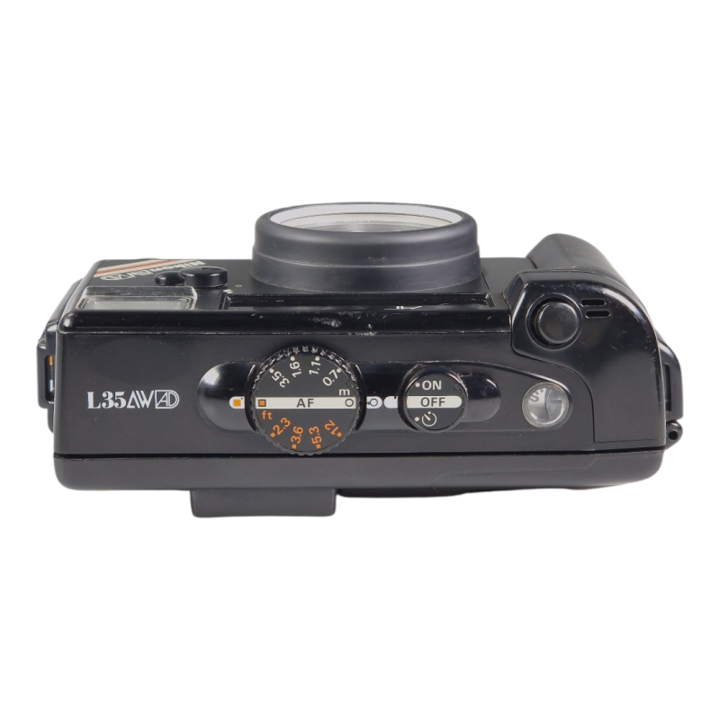 Hieman harvinaisempi vankkarakenteinen ja vesitiivis filmipokkari, jossa hyvälaatuinen 35mm f/2.8 linssi. Erinomaisessa ja täydessä toimintakunnossa. Automaatti- ja manuaalitarkennus. Käyttää tavallisia sormiparistoja. Hieman ulkoista käytön jälkeä. AD-versio, eli päivyriperällä.