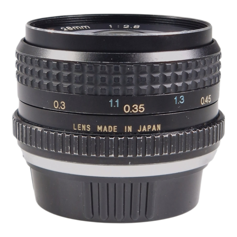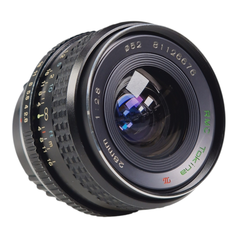 Tokinan RMC-pinnoitettu näppärän kokoinen laajakulma Olympus OM -kiinnityksellä. Tarkennus sulava, himmennin puhdas ja napakka. Optiikka on siisti ja naarmuton. Jonkin verran kosmeettista kulumaa.